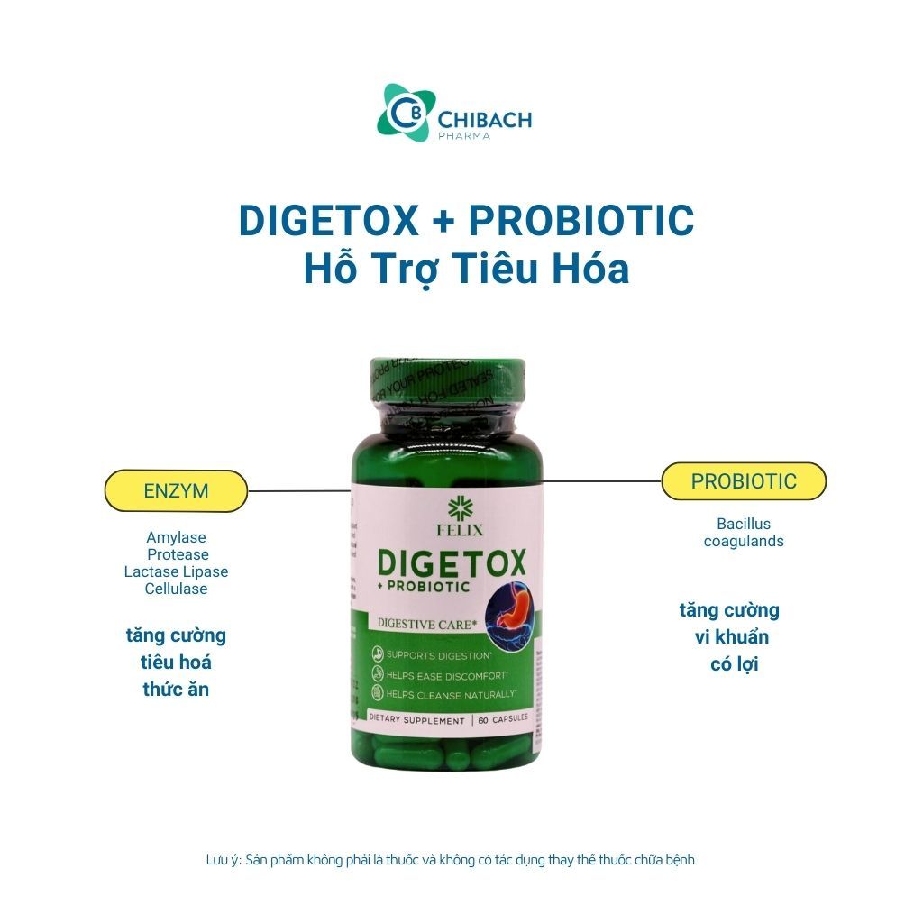 Viên uống Digetox + Probiotic hỗ trợ tiêu hóa tốt nhập khẩu chính hãng, của felix, mỹ